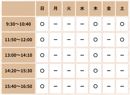 日中は日曜・木曜・土曜(午前のみ)開講。